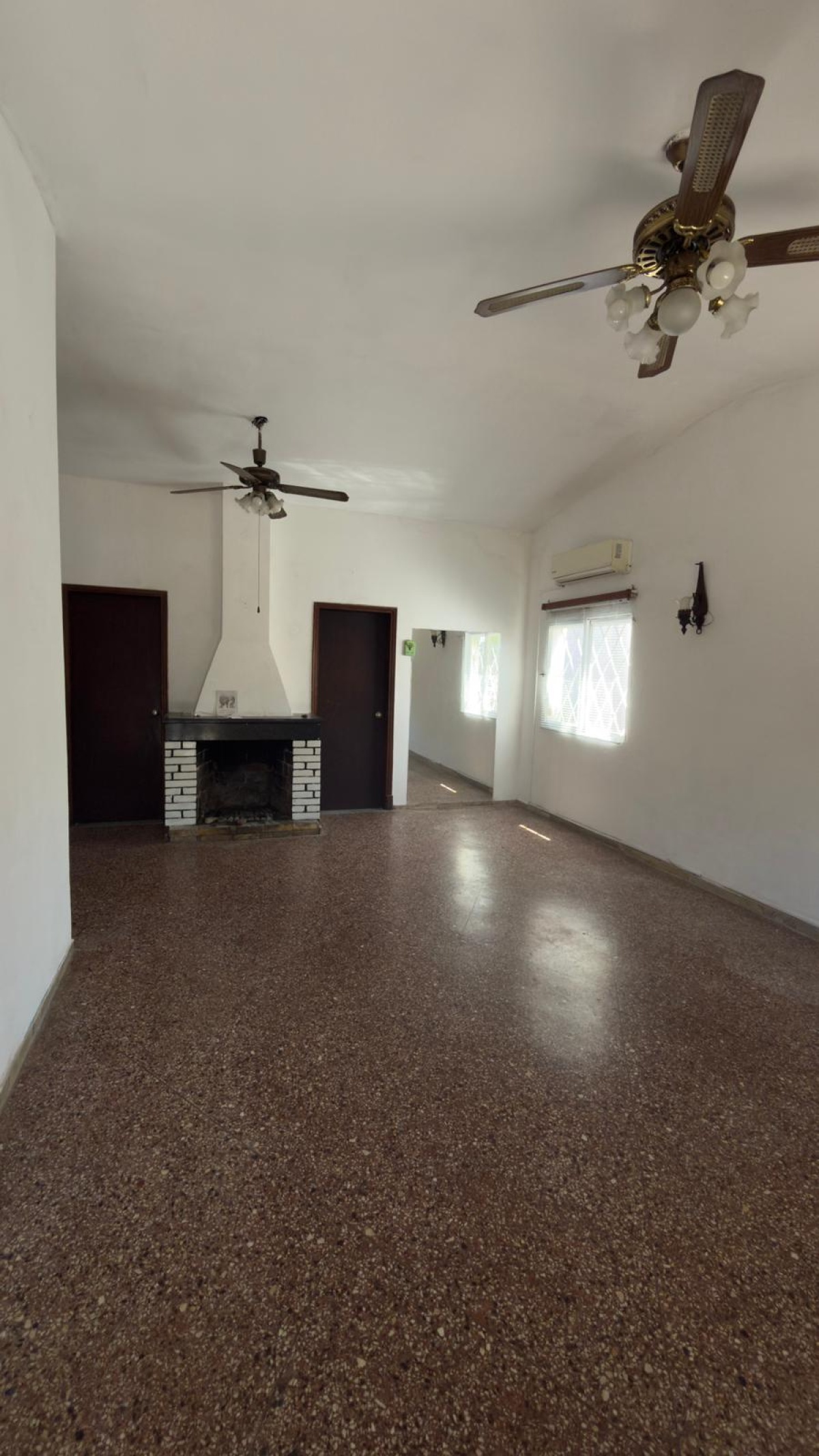 Living–comedor amplio, con ventanas en hierro y persianas de madera que brindan excelente iluminación y ventilación.
